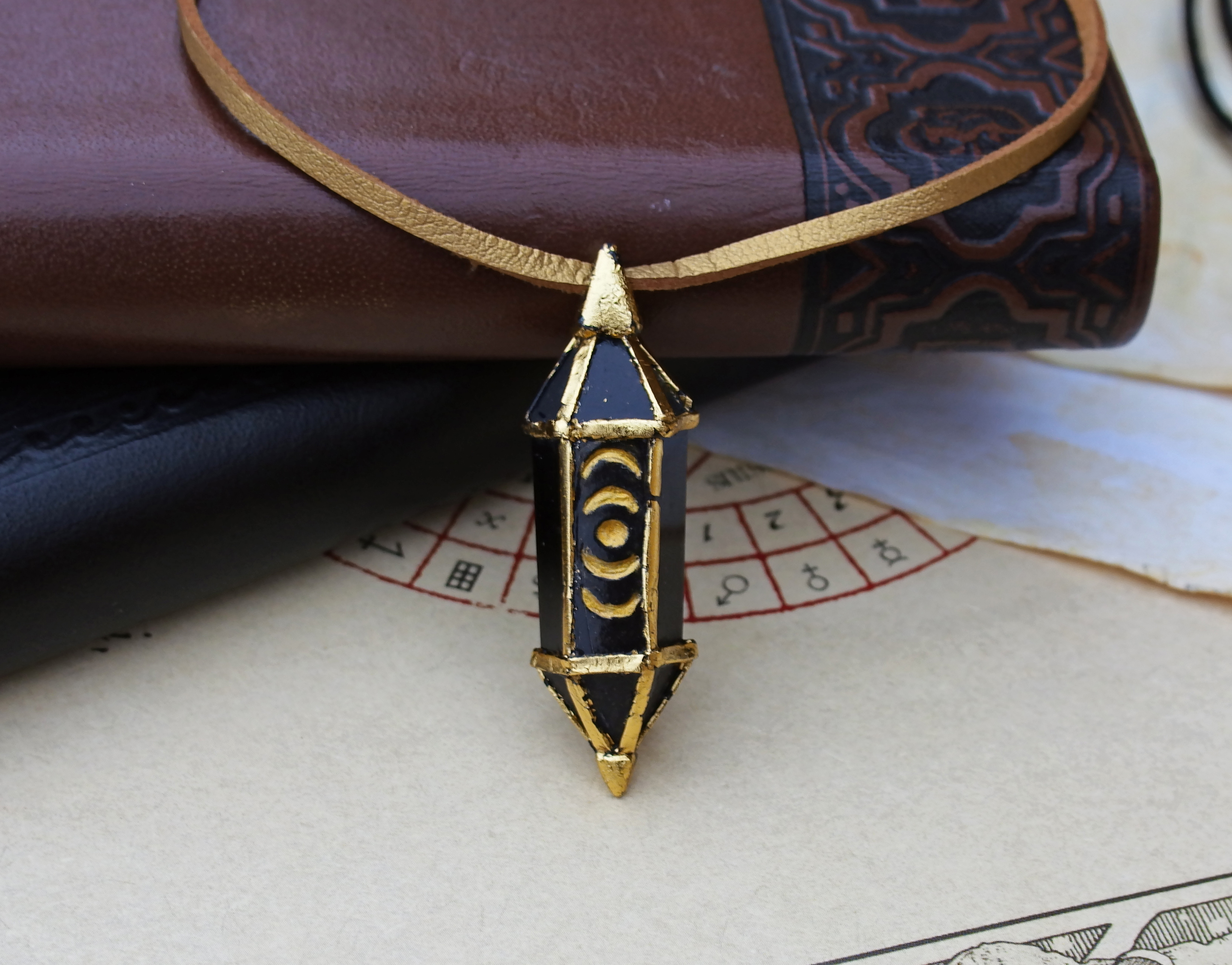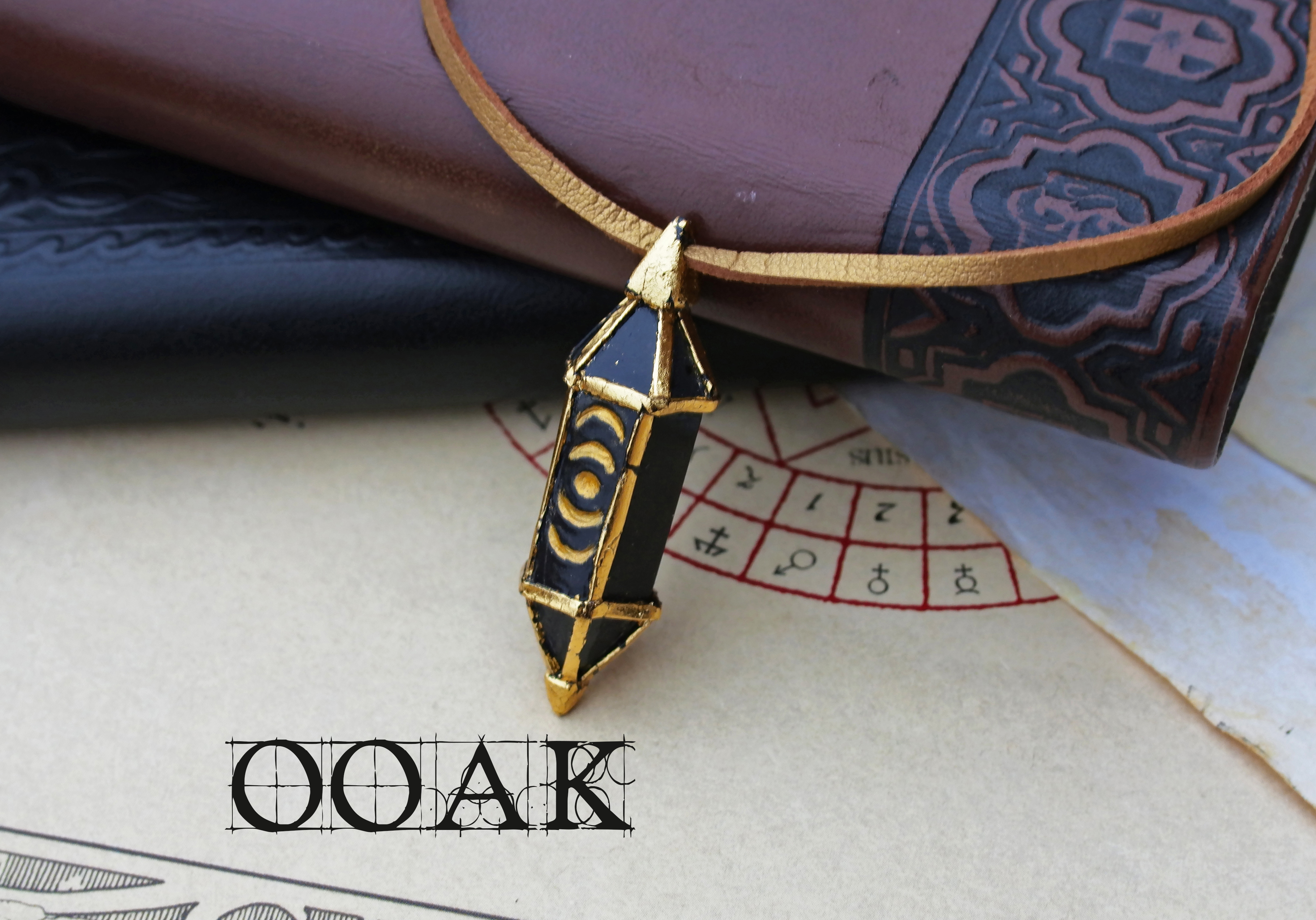 This lightweight resin crystal is a one of a kind pendant: hand-sculpted motifs and metal details make this necklace a unique piece, a small token of a fantasy world, ready to spice up your day with a little magic!