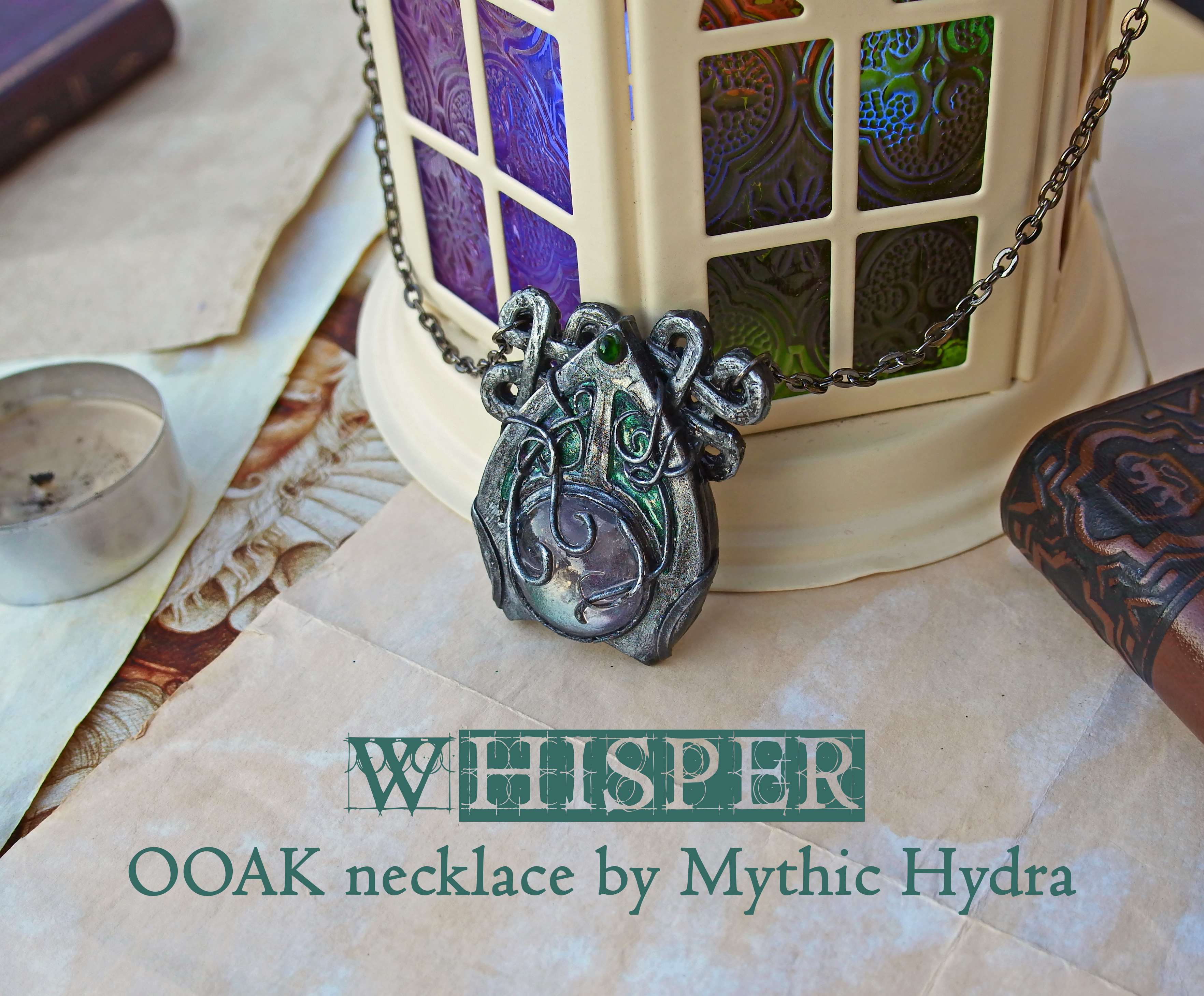 ✨ Whisper is made of professional polymer clay, resin and glass beads, it measures 4,5x4 cm (1.77x1.57 inches), and it's matched to a black metal adjustable chain (total lenght 54 to 59 cm or 21.26 to 23.23 inches). It comes in an elegant organza pouch, ready to be gifted.