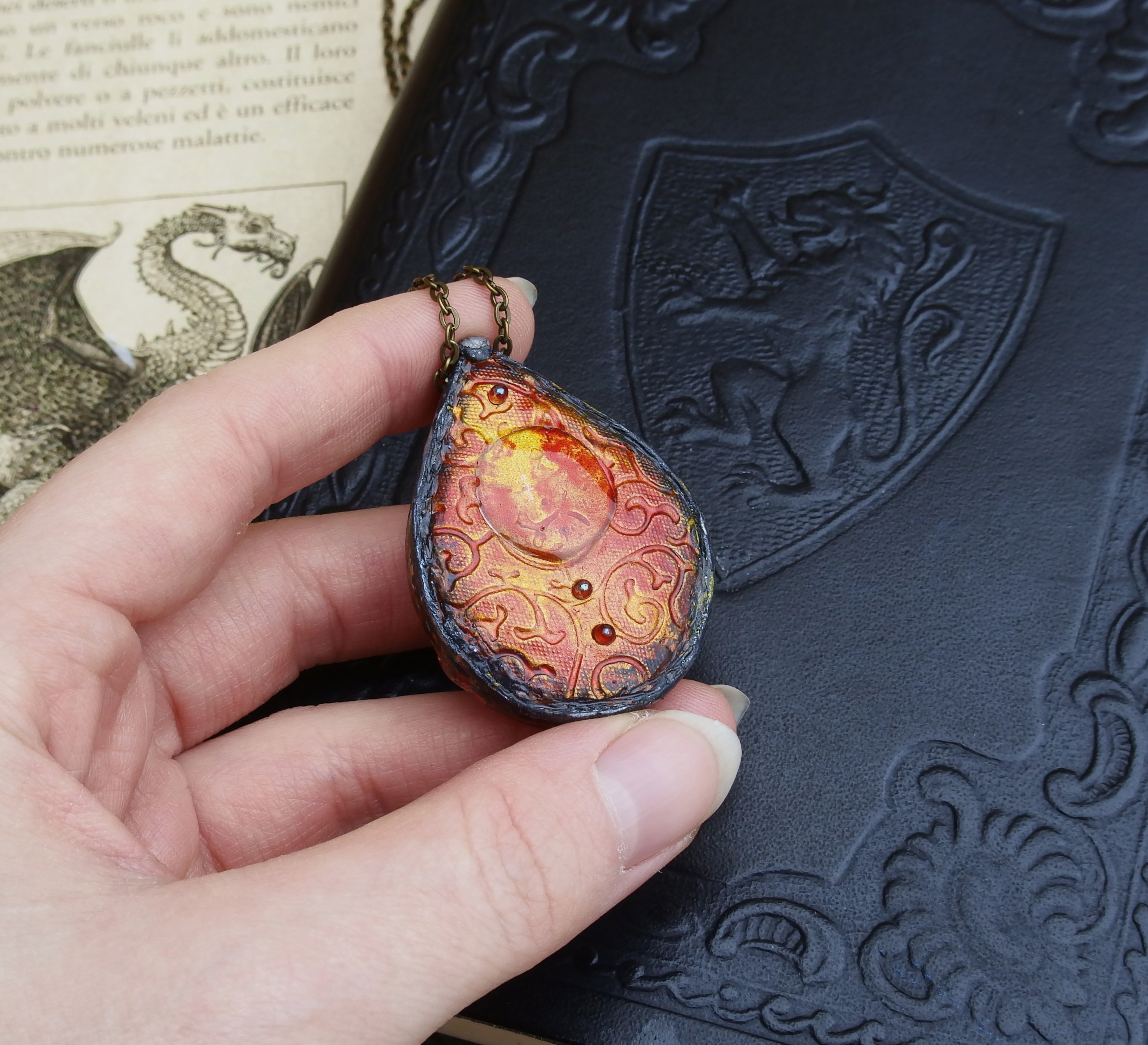 ♝ The pendant measures 4,3x3,5 cm (1.69x1.38 inches), and it's made of polymer clay, resin and glass beads. It's matched to an antique copper adjustable chain (total length 44 to 49 cm or 17.32 to 19.29 inches). The necklace comes in a pillow gift box, ready to be gifted.